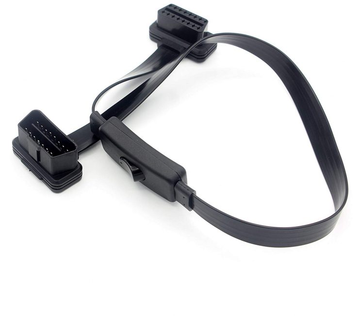 Bezplatný dotaz pro obd II prodlužovací kabel muž na ženu 16 Pin průchod přes 60 cm – Pravý úhel nízkoprofilový diagnostický kabel s vypínačem napájení, aby se zabránilo vybití baterie pro všechny autozařízení OBD2