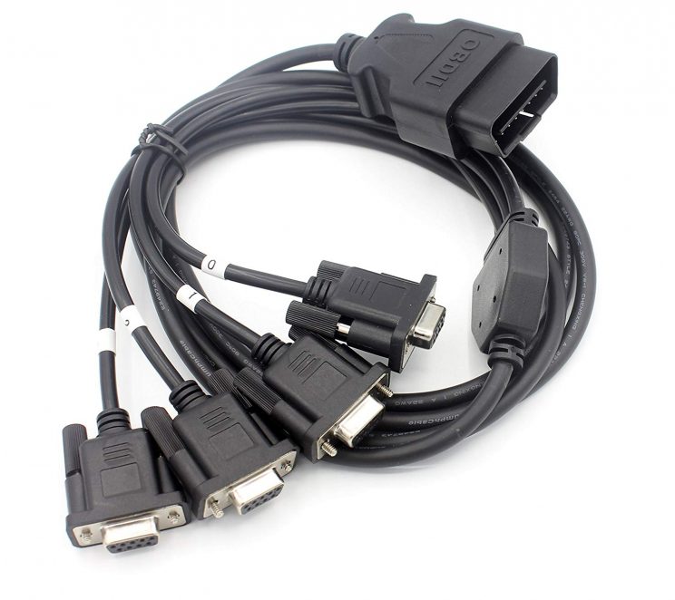 Ένα OBD2 έως 4 DB9 Connector.Not όλες οι ακίδες OBDII μπορούν να συνδεθούν. Αν το χρησιμοποιήσετε με τη διάγνωση OBBΙ,Συγκρίνετε πρώτα την αντιστοίχιση PIN με την απαίτηση του. Εάν η απαιτούμενη καρφίτσα δεν είναι συνδεδεμένη , η σχετική συνάρτηση δεν μπορεί να λειτουργήσει ,ή ο διαδιαγνωστέας δεν μπορεί να λειτουργήσει σωστά.